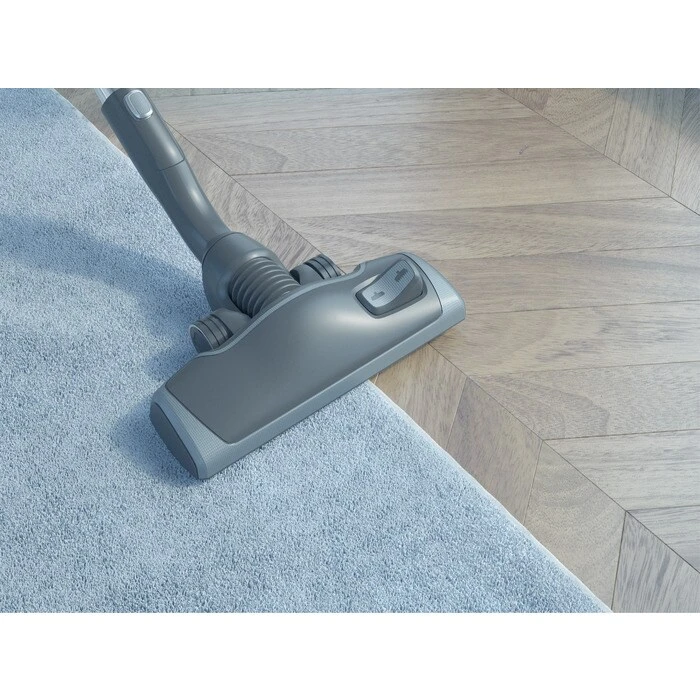 Thanks to its innovative design, this nozzle with side angled brushes for close to corner vacuuming will provide excellent dust pick-up. Perfect for all floor types thanks to its metal plate and brushes, the pedal will switch smoothly for different surfaces. Easy to manoeuvre with its smooth wheels and designed for an extended silence; the VARIO 7000 nozzle also offers a protective front rubber bumper.
