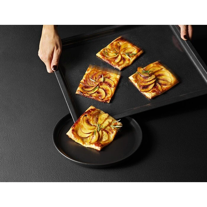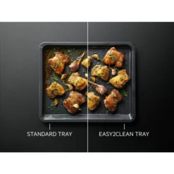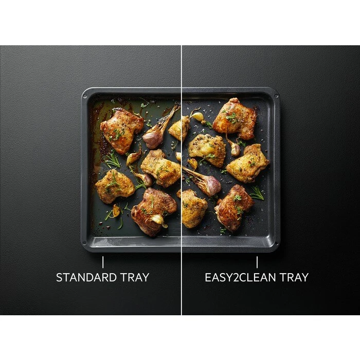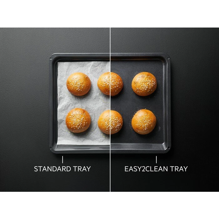 - The Easy2Clean Tray has an innovative ceramic coating that gives you the freedom to place food directly on the tray’s surface and cook without baking paper or additional oiling. Also, dirt won’t stick, so forget about pesky stuck remnants.