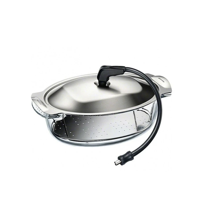 The steam pan set allows you to cook with pure steam, contained inside the pan. This enhances the quality of the food and it’s flavours, all of which saves energy.